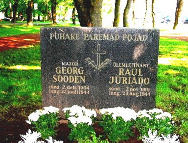 Langemise puhuks tellitud uues ülikonnas maeti Georg Sooden’i surnukeha auavalduste saatel kodulinna Jõhvi kirikuesisele väljakule Vabadussõjas langenute Jõhvi kihelkonna mälestussamba kõrvale. Oma lillevaniku, kirjaga peal “Pisikeselt”, pani sinna ka leitnant Jüriado. Postuumselt ülendati Georg Sooden SS – Sturmbannführeriks.
