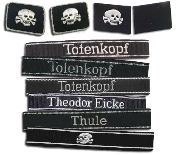 Sümboolika: varrukalint “Pealuu” sümbol (kuni’43), seejärel “Totenkopf” (määrus sept. ’42). Rügementide nimed “Thule” (kuni dets.’43), “Theodor Eicke” (alates märtsist’43), “Heimwehr Danzig” (’39-’43), “SS-Heimwehr Danzig” (alates’43). Lõkmetel Totenkopf e pealuu või ruunimärgid “SS”.